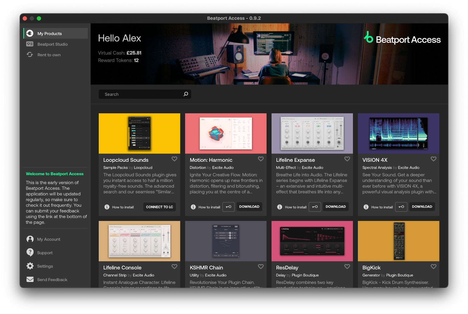 Once you start your Beatport Studio membership, your Loopcloud Sounds plugin will be in the 'My Products' tab in Beatport Studio.