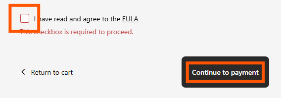 Check box > click Continue to payment
