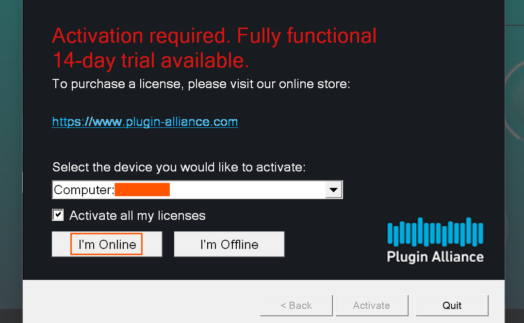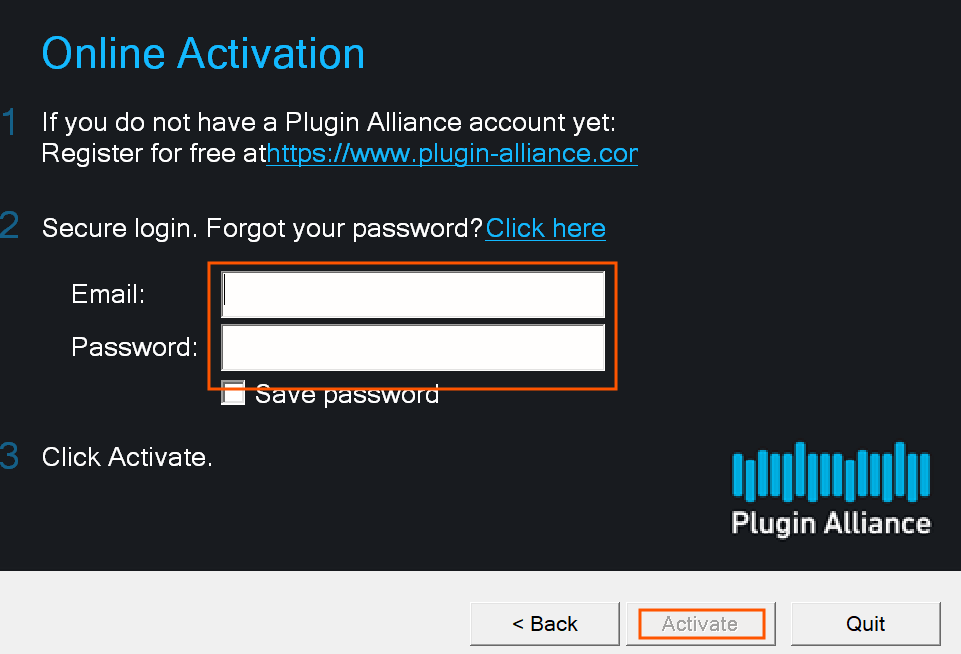 Enter your Plugin Alliance login details > Click Activate