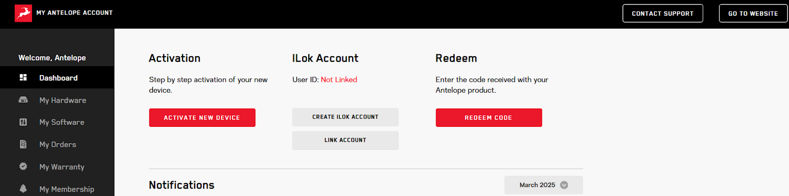 4. If you don’t have an iLok account, select CREATE ILOK ACCOUNT > link it to the Antelope account.