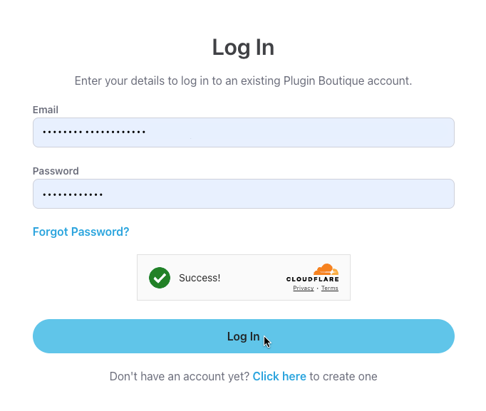 1. Enter your account details on the Login page here and click the Log In button.