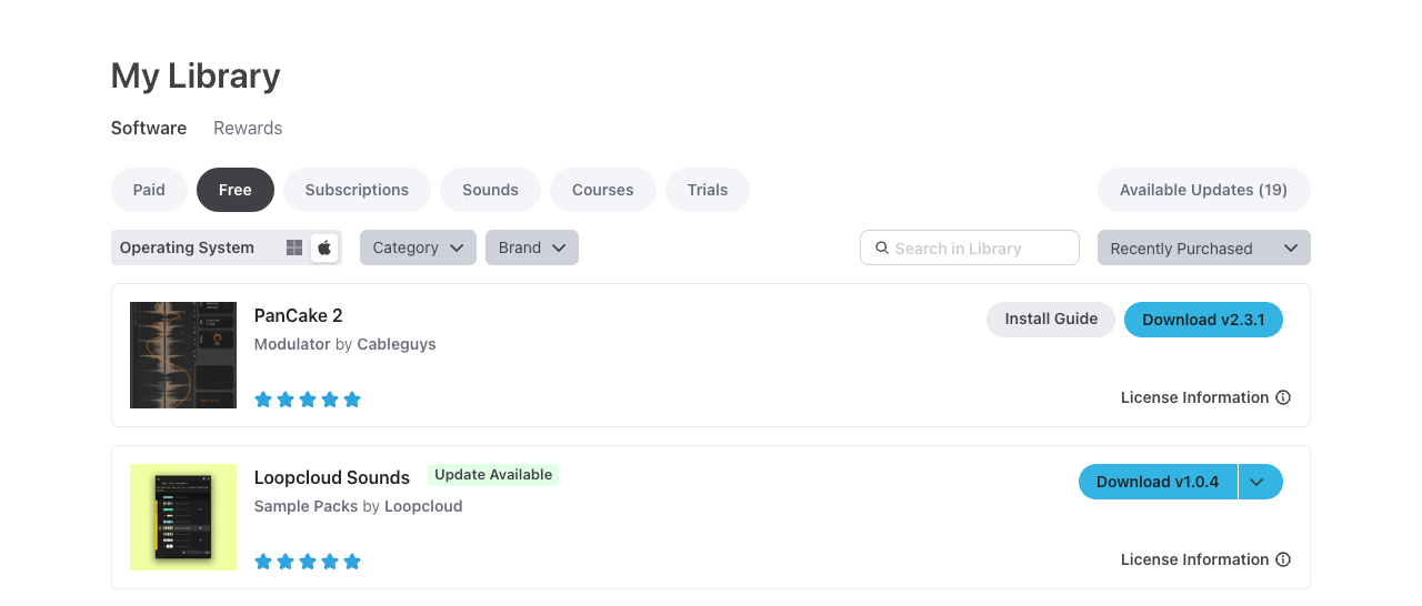4. You can now download and install your free products in this tab.