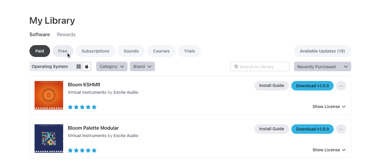 Instructions on how to locate free products within your Plugin Boutique Library.