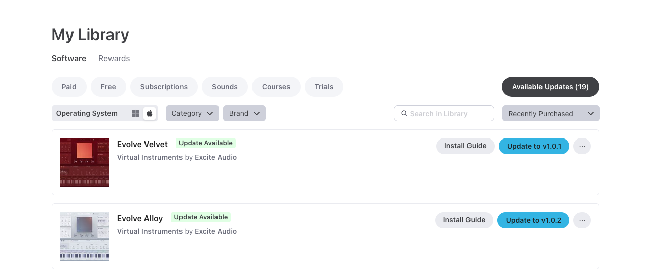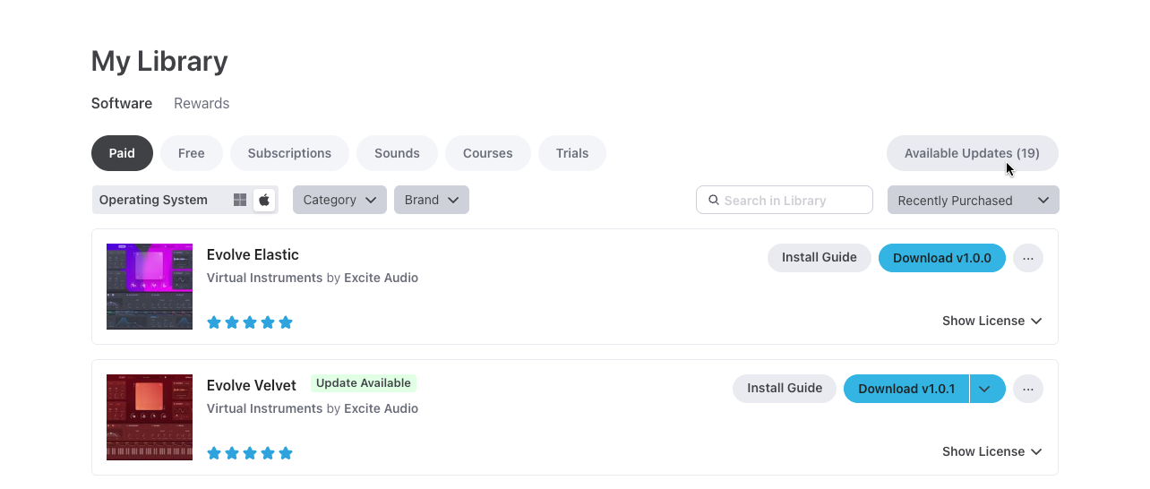 Instructions on how to locate updates within your Plugin Boutique Library.