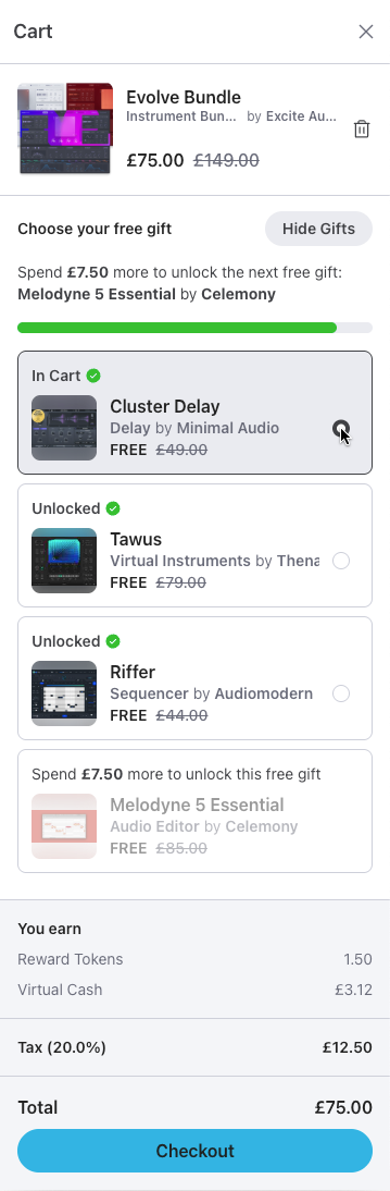 The progress bar will appear in the cart, which shows how close you are to unlocking more gift options.