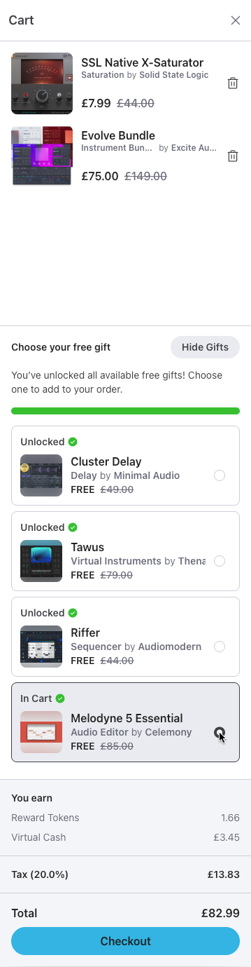 - Add any paid product to your basket (this offer is not valid on free products) and select your free gift using the cart sidebar.