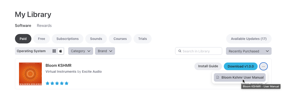 2. If a manual is available for your product, the three-dot button will be available next to the download button. Click the three-dot button to see the dropdown option.