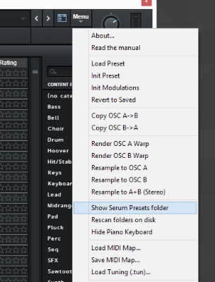 3. Click ‘Show Serum Presets folder’ > this will open the location of Serum’s entire available content.