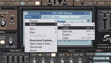 3. To load a preset bank, click the ‘Bank’ option then choose ‘Load’ within the interface’s central screen to locate your chosen bank.