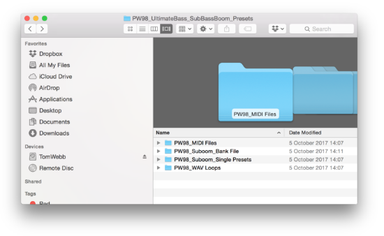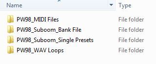 3. Navigate o the computer location (e.g Documents) where you saved the main expansion pack folder to, and locate the 'PW98_Suboom_Single Presets' sub-folder.
