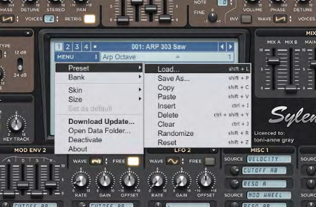 2. Open Sylenth within your DAW > click the ‘Preset’ option within the interface’s central screen, and then select ‘Load’ to locate the individual preset within the extracted folder (once it has been unzipped).