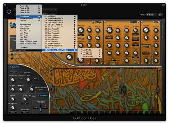6. The individual files are located and available for selection when clicking the preset pack name e.g 'Ultimate House Basses Vol 1', before choosing a particular preset from a preset bank.
