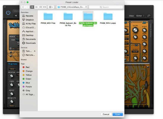 4. Double-click on the ''PW98_Suboom_Single Presets' sub-folder, and select a .fxp file name/preset of choice e.g 'Classic House Bass.fxp' > once the file is selected, click on the 'Open' or 'Choose' option that is displayed within your computer's web browser to upload the preset file.