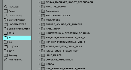 3. Within Ableton Live click the ‘Add Folder’ option on the left pane and locate the folder you have chosen. This shortcut will enable you to load sample packs quickly and easily.