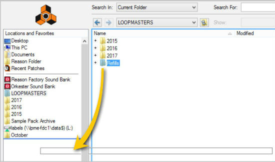 3. Locate the ‘Refills’ folder and drag and drop it from the browser window to ‘Locations and Favourites‘, which is located within the left-side section you will now need to move your purchased Refills to this folder.