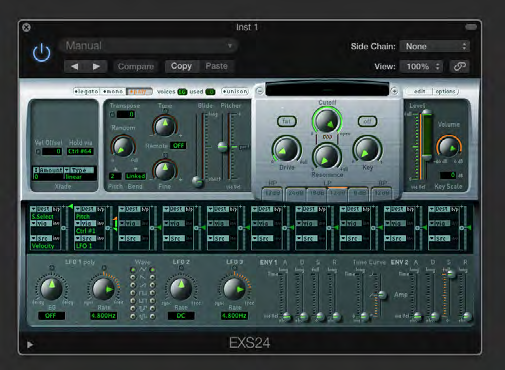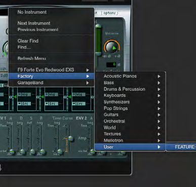3. You may wish to create a ‘User’ folder like the one shown above open Logic, as well as the EXS24 sampler to a software track, before selecting the ‘…’ tab loading the EXS24 patches window (as shown below).