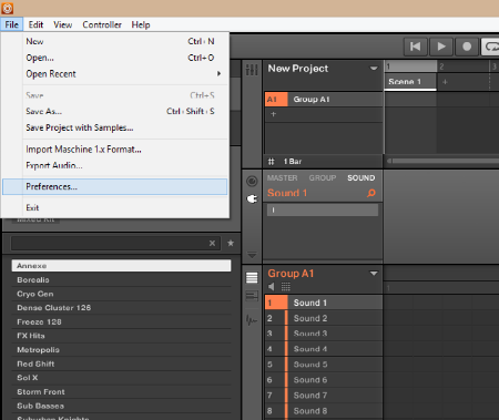 2. Open Maschine and select the ‘File’ ‘Preferences’ and then ‘Library’ options, before clicking the ‘User’ tab.