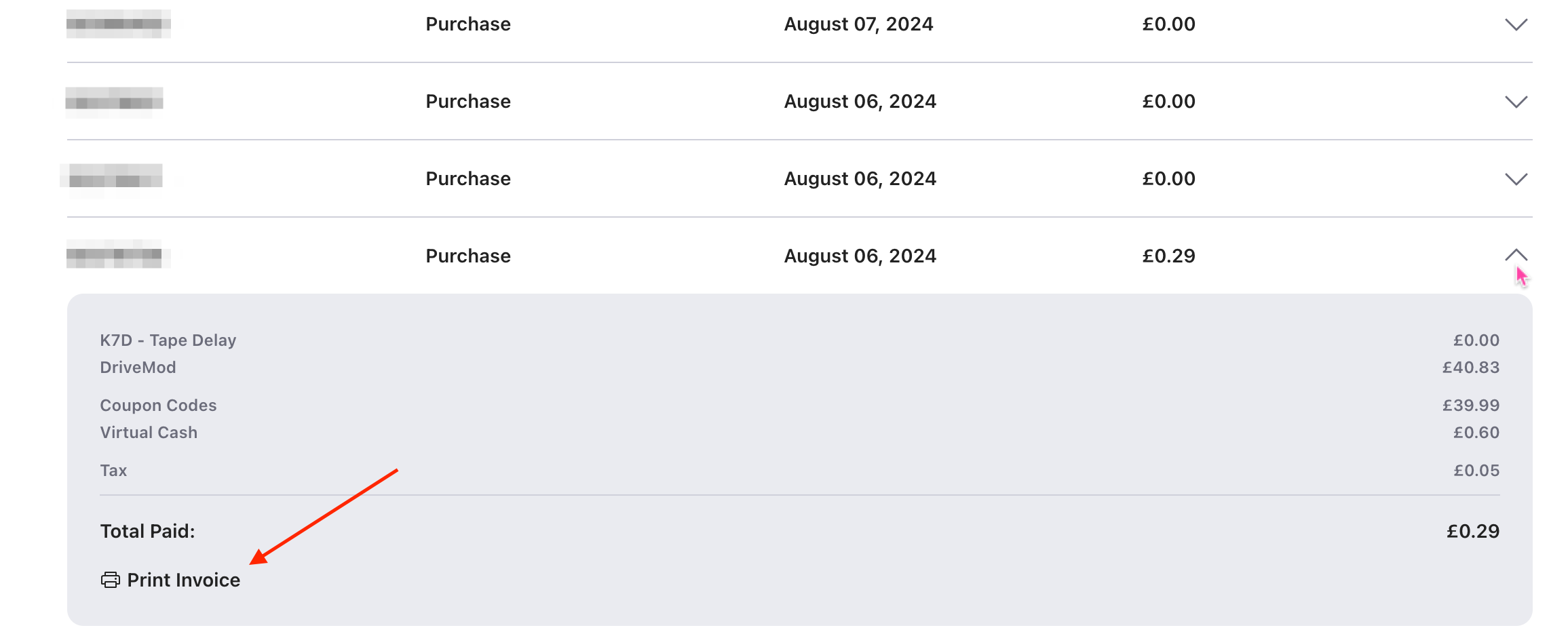 3. Find the order which you would like to view, and then click dropdown arrow.