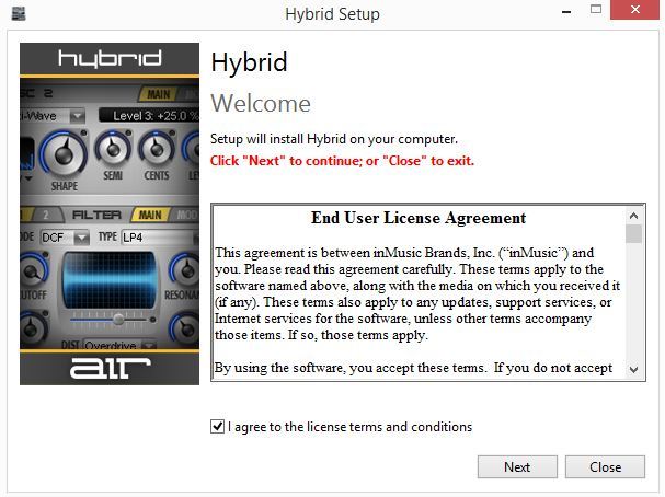 4. 使用可能なボックスにチェックを入れて[Agree to the License Terms and Conditions]をクリックし、[Next]をクリックします。